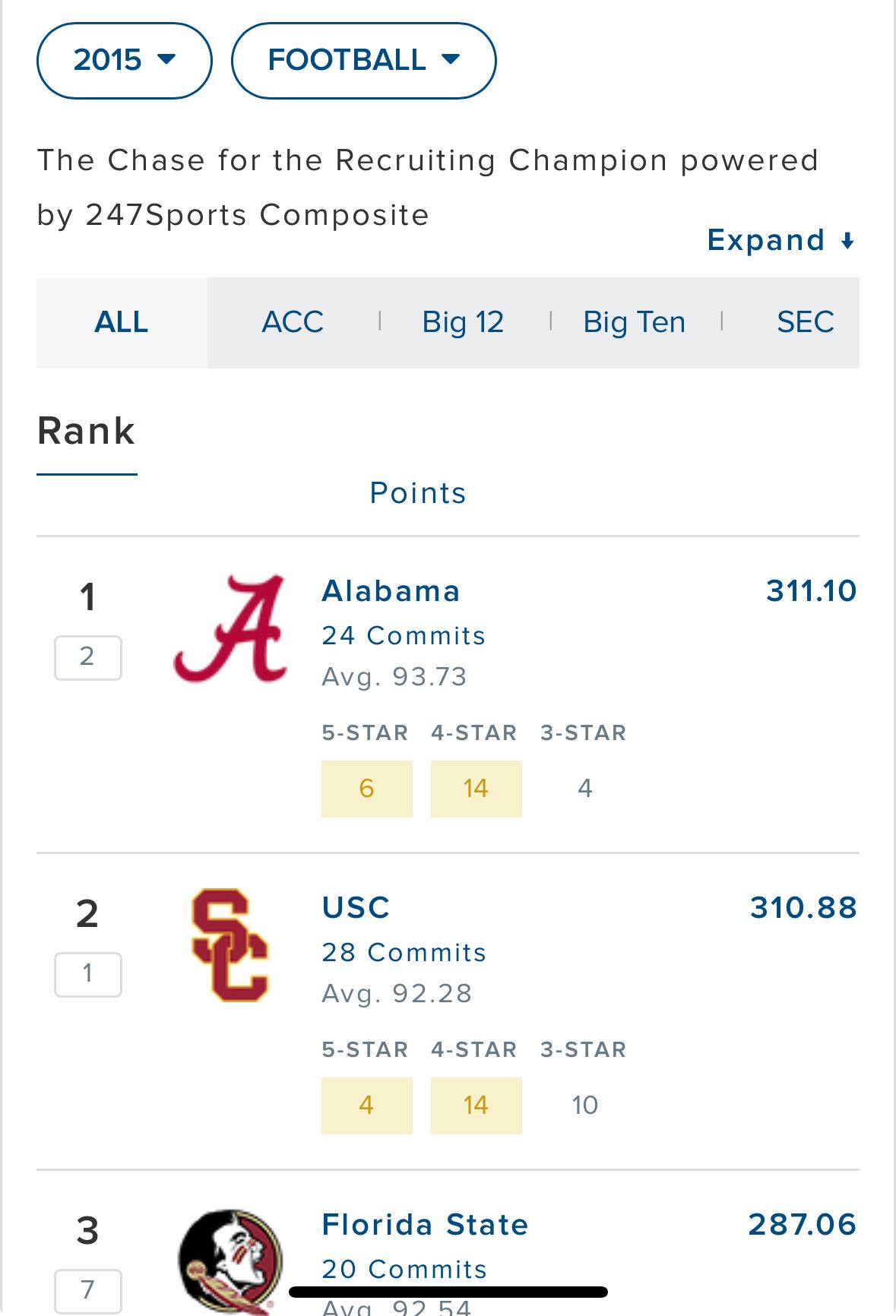 They have top 3 stars. They have 22 guys who are Blue Chips, meaning 4-5 stars. They had some before Bowden but this class hit high gear with Chad.