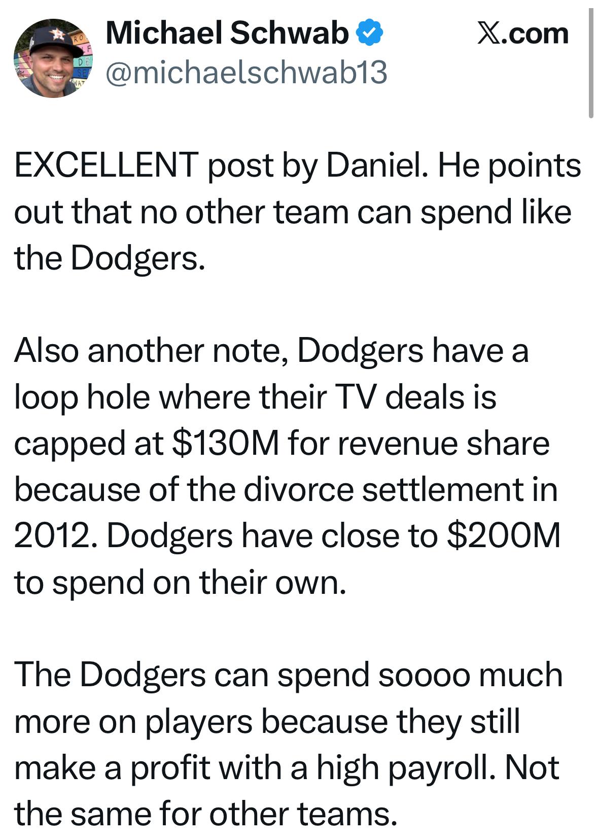 I really remembered when I saw this deal be announced right after the Dodgers sold wondering why they had to go bankrupt and why mc court had to sell the team