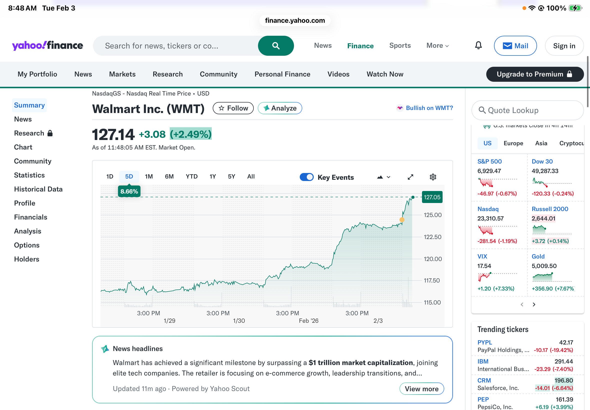 As much as I brag about some of my tech stocks, WMT is my crown jewel when I look at the last couple of years.