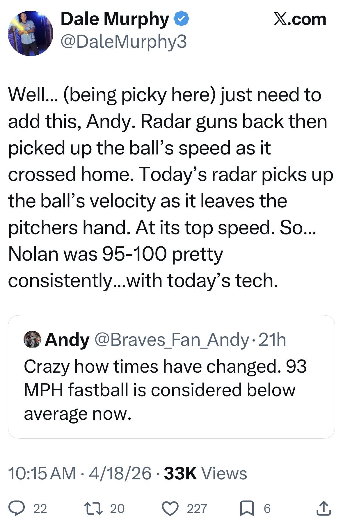 i would say this. I see more guys throwing harder than ever before. I don’t think guys today are throwing harder than the Big Unit, Nolan or Clemons. But clearly they are throwing harder than Don Sutton.
