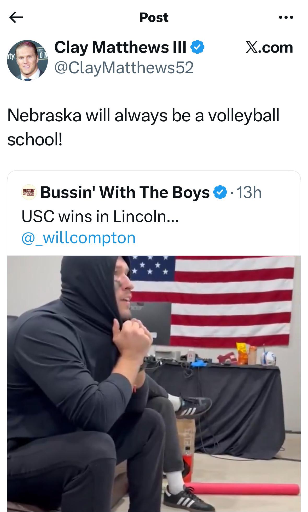 Clay Matthew’s Wins the Day – USC vs Nebraska