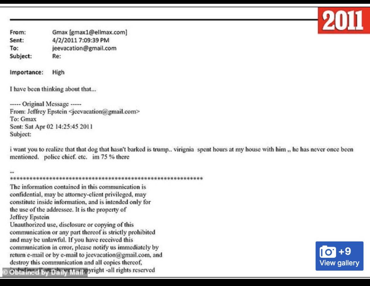 They redacted her name from email below but her she is Virginia G. Man you Epstein hoax believers are dumb