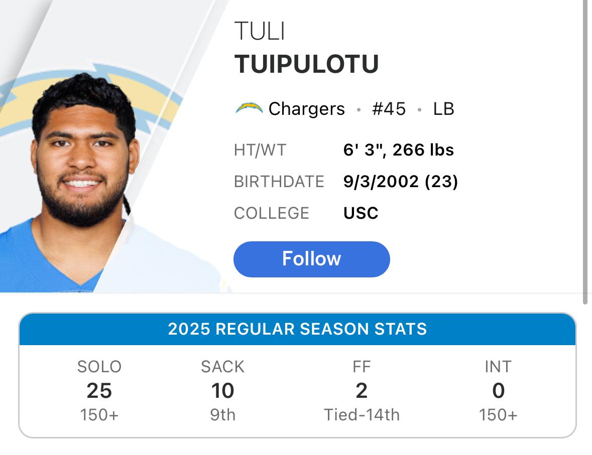 Tuli was a great player for USC, All PAC 12. He’s a good example how a 3* rated player showed how wrong the R services were. He is Marlon’s younger brother who was a 4.5* recruit out of Oregon and was All PAC 12. C. Helton flipped him from UDub last minute.