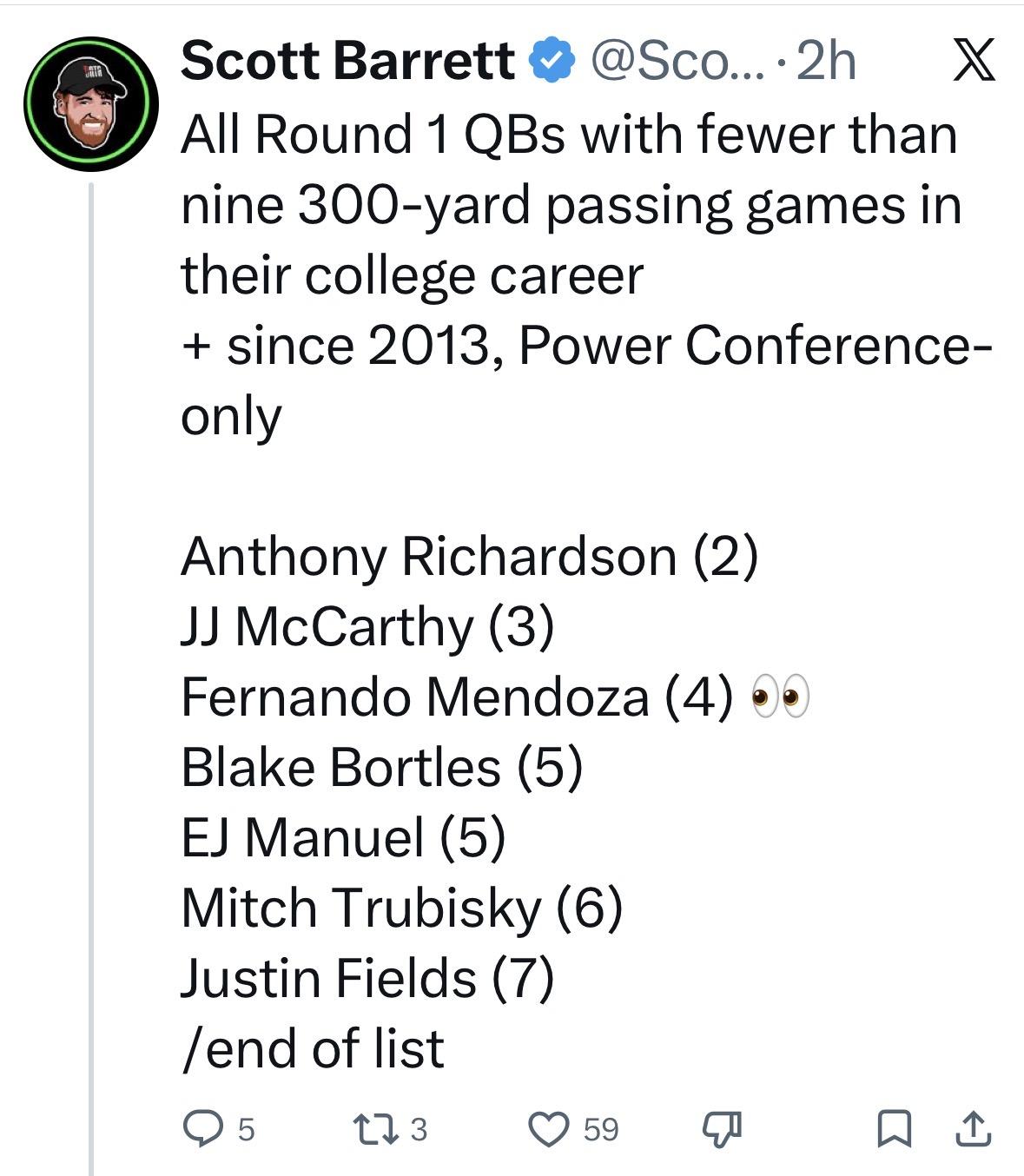 Home › Forums › Football › Interesting Stat on NFL QB Prospects