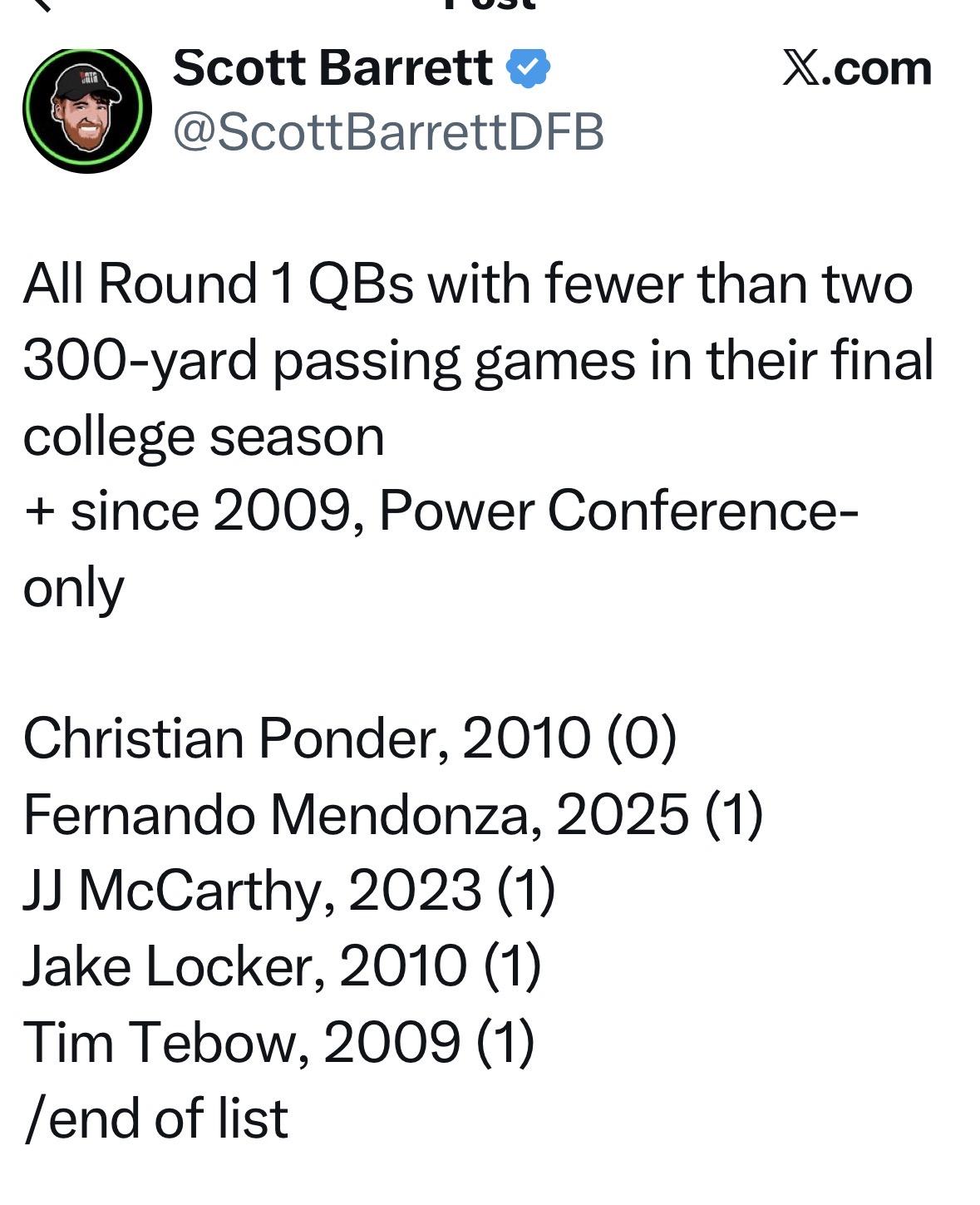 up big numbers flame out in NFL. Interesting. Idea being it’s easy to hide your flaws if you’re not doing much?