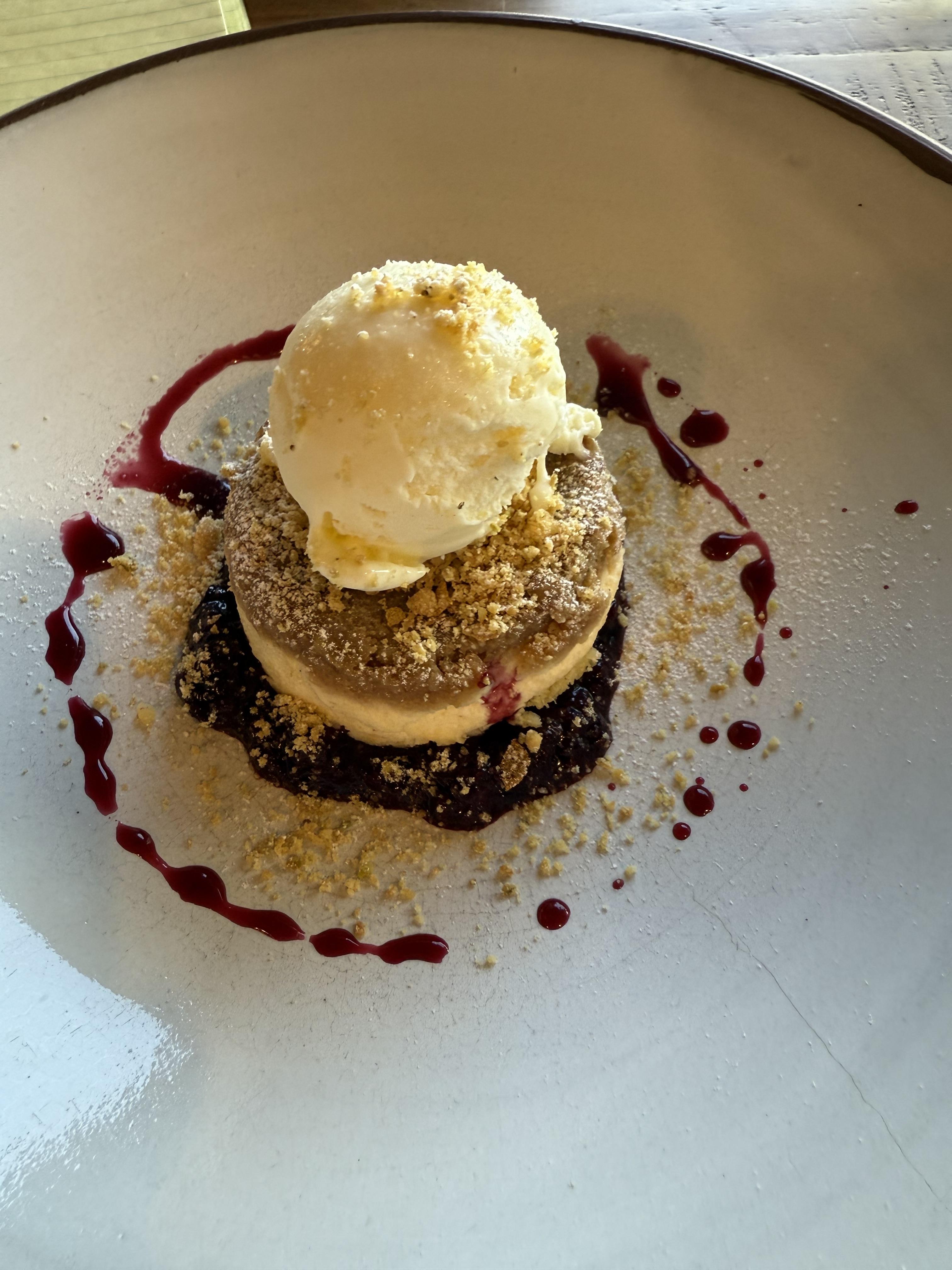 desert mmmm ice cream with sprinkles on cheesecake With lots of crumbles. With a berry compote of some sort. Raspberries mostly. Yummmm. Just remember. Desert is the mist important meal of the day. I have a pencil neck. So I have the right to eat all of it that I want. That’s totally my line w my wife now. Hey. Grocery stick says I’m skinny. So I can eat whatever I want now !!!
