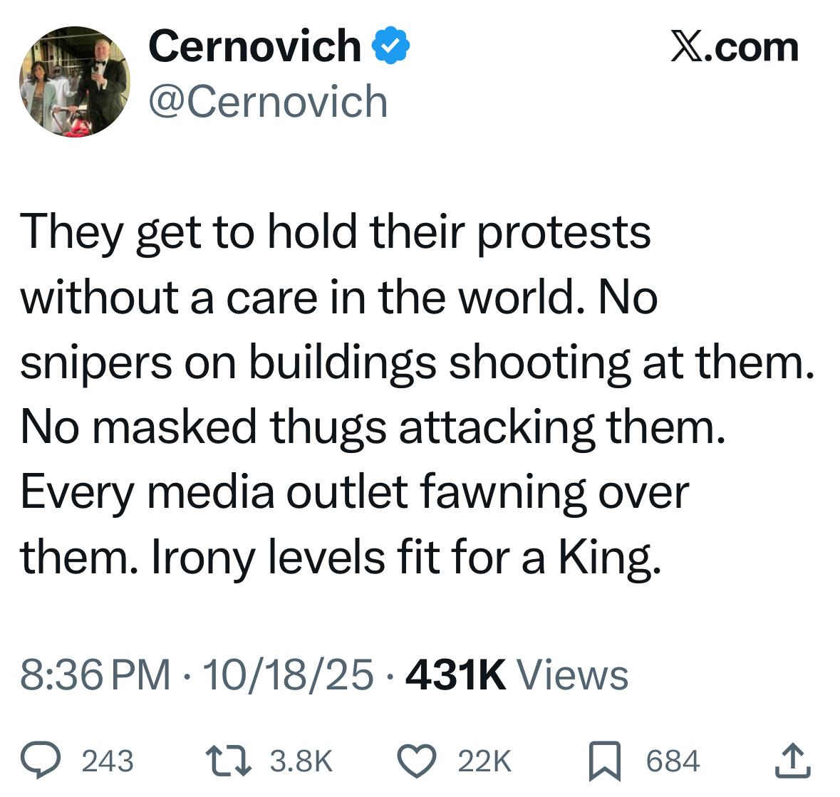 I wonder if they realize that if in fact we actually had a king they wouldn’t be allowed to protest or march or any of it. Of course they don’t. Bunch of low iq voters