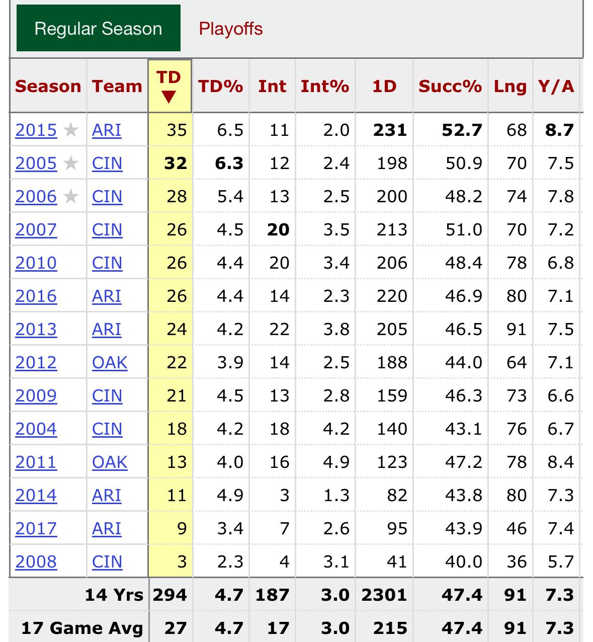 Home › Forums › Football › Sam Tied Carson Palmer’s Career High in TD Passes Last Year
