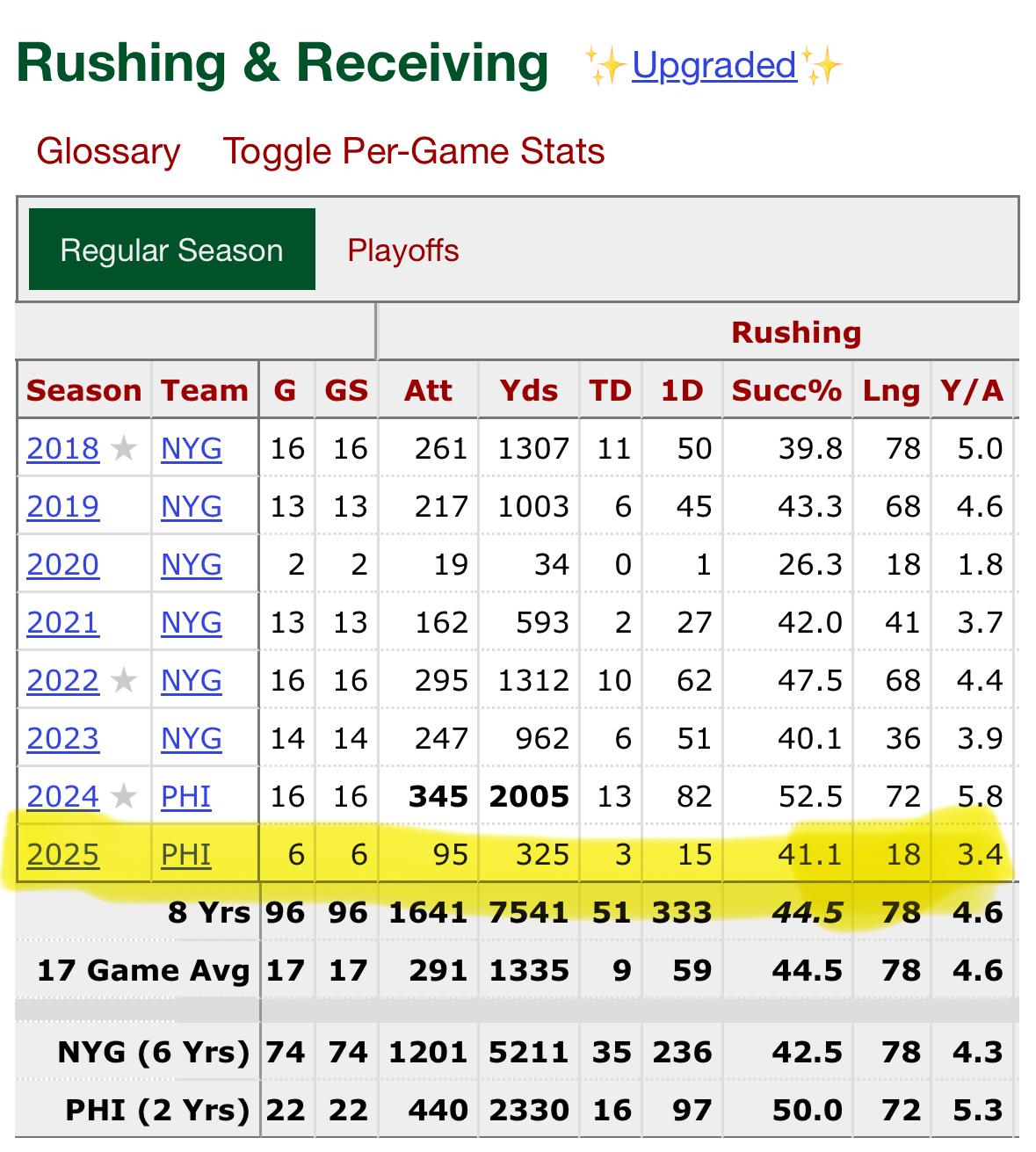 I thought you said Barkley wasn’t good, that he didn’t get yards after carry? Pretty sure you weren’t a fan last year early based on our “discussions” lol.