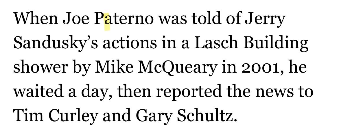 lots of people to blame in Sandusky affair. Boys orphanage. Child services. PSU police. PA police. (All investigated Sandusky and spoke with kids and let him walk. Twice.) Sandusky himself. Red head assistant coach (he did report it. He didn’t stop it. He wasn’t sure wtd. Steamy shower. Naked bodies. Wacko Scenario to walk into) PSU AD. PSU President.But not JoPa. He’s laughing now.