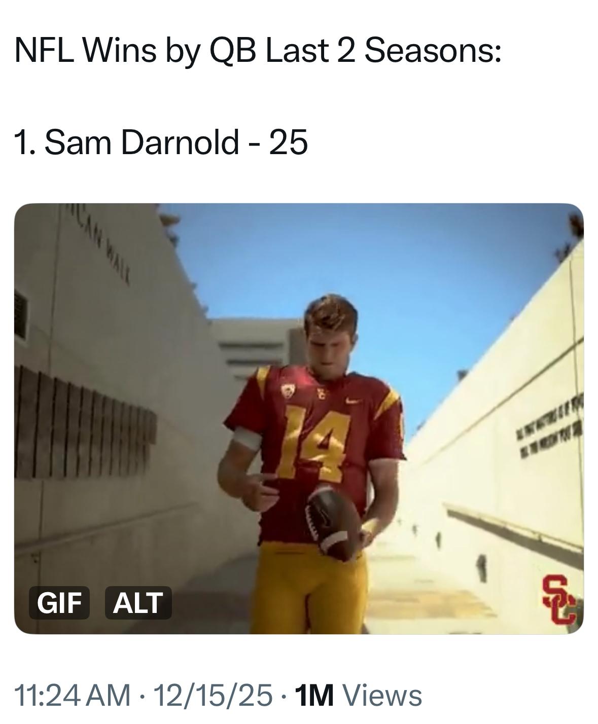 The offense has been really, really awful lately. Darnold’s teammates and coaches are clearly frustrated and haven’t used his name in public comments but are clearly pointing fingers at him.