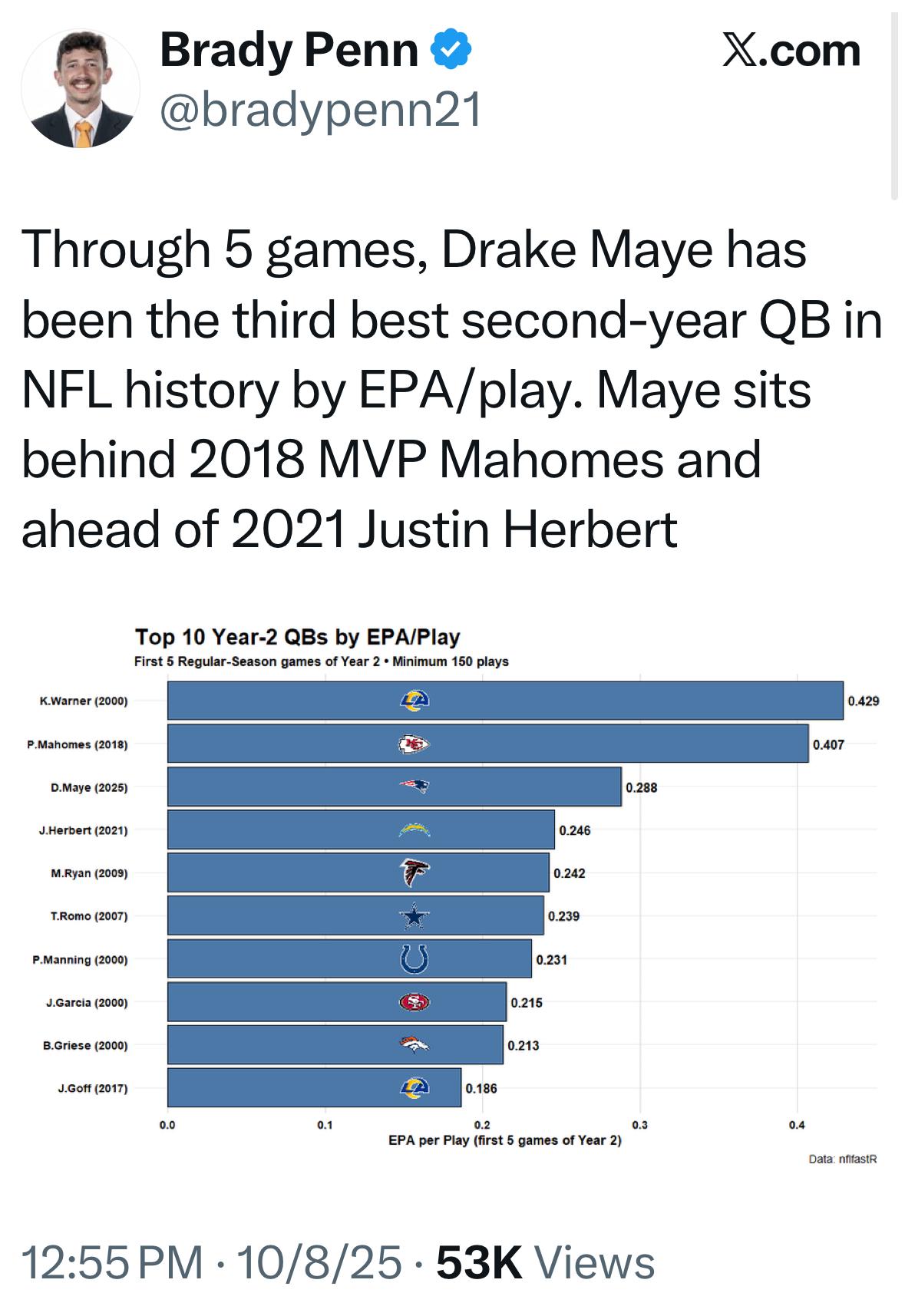 He doesn’t play the other 21 positions or special teams. I believe they are 4-2.